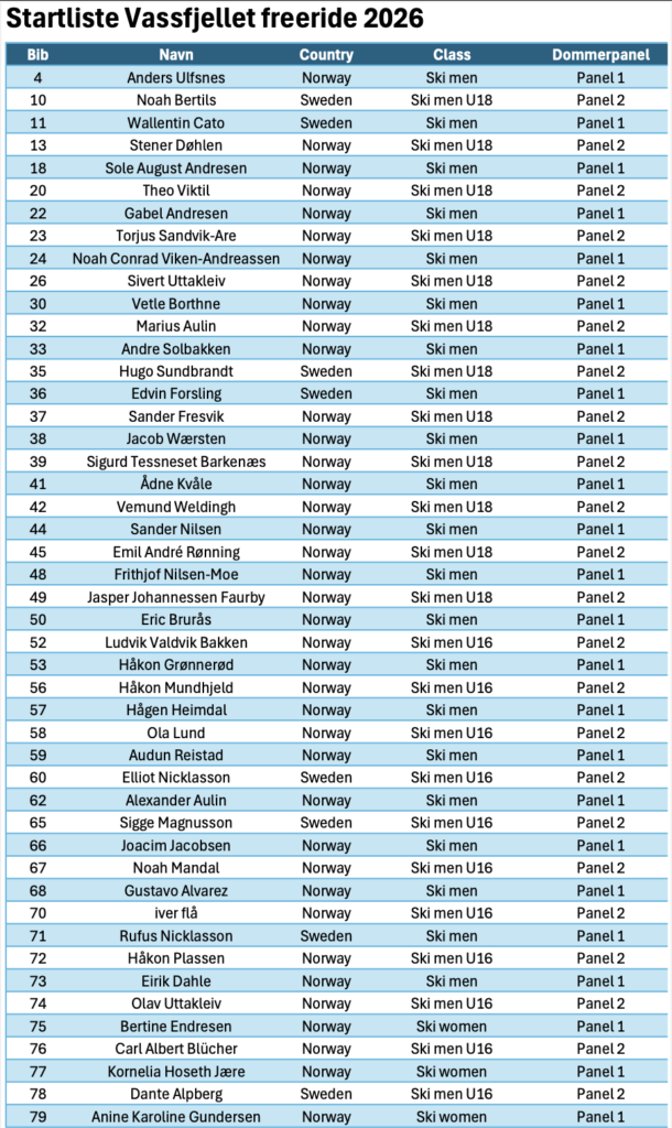Dette er en nettside der all relevant informasjon for utøvere i Vassfjellet Freeride legges ut. Om det er noen yttterligere spørsmål knyttet til arrangementet, kan dette sendes på sms til: 418 43 992.